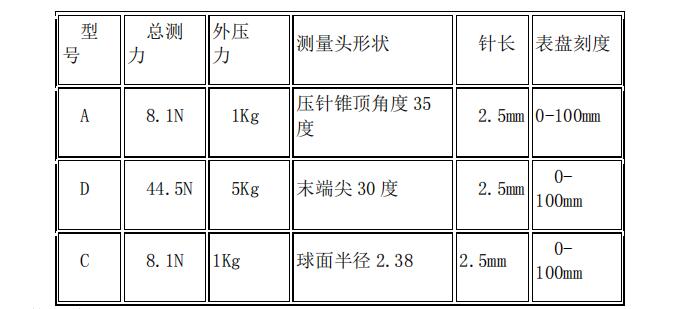 硬度計(jì)的型號(hào)、參數(shù)見(jiàn)表(如下)