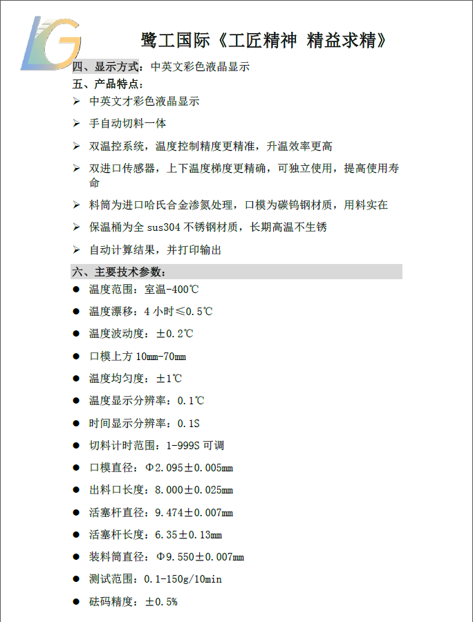 LGD-400A質(zhì)量法 熔融指數(shù)儀