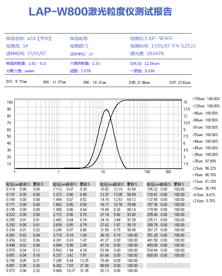 | 統(tǒng)計方式 | 體積分布和數(shù)量分布,以滿足不同行業(yè)對于粒度分布的不同統(tǒng)計方式 | |